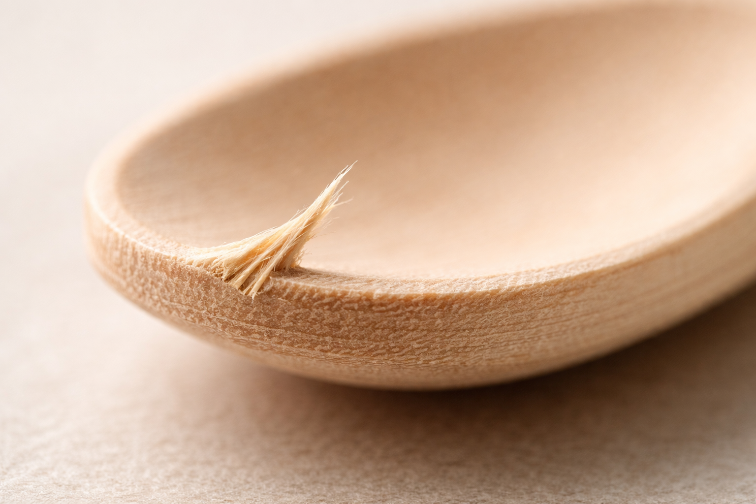If the wood veneer was peeled too thinly or polished too aggressively, the edge of the spoon becomes razor-thin. It feels sharp and uncomfortable in the mouth.